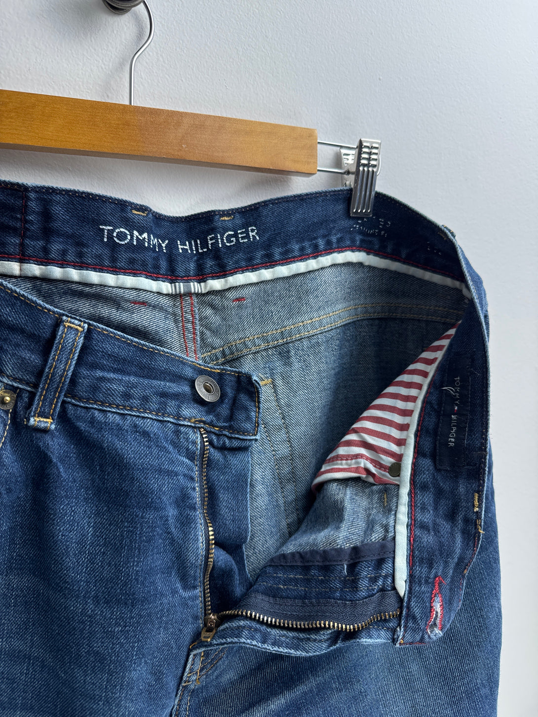 - Detalii: Închidere cu fermoar și nasture, stil clasic cu cinci buzunare și logo-ul emblematic Tommy Hilfiger brodat pe buzunarul din spate.