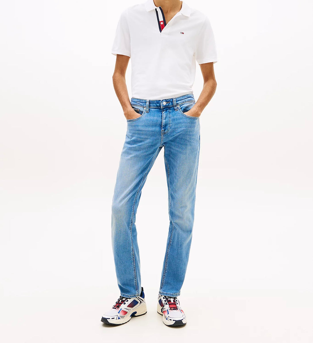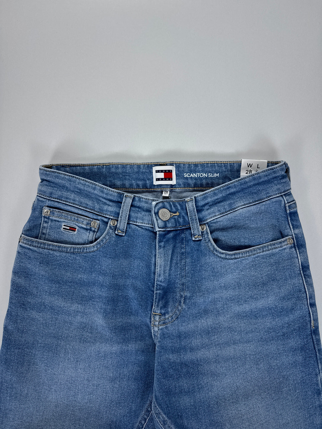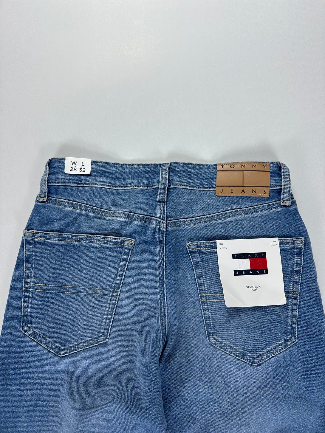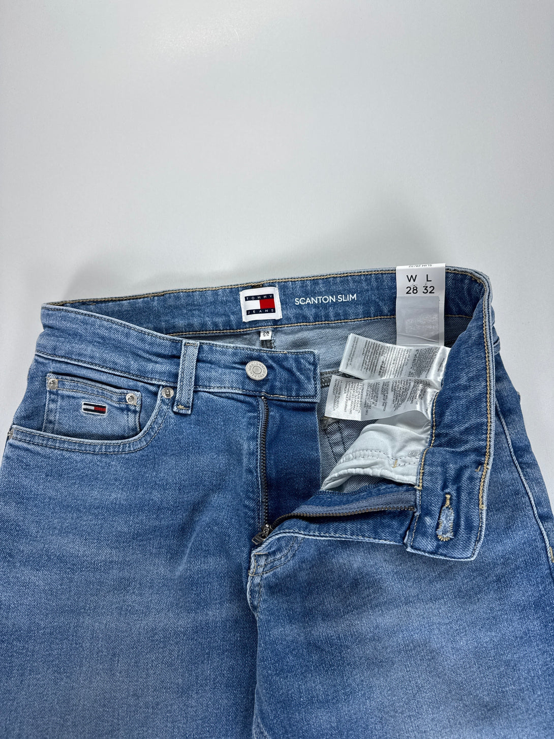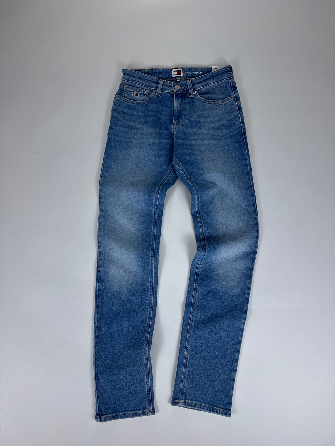 - Detalii: Prezintă efecte de decolorare (whiskering and fading) în față și în spate, stil cu cinci buzunare și logo-ul emblematic Tommy Jeans pe buzunarul din spate.