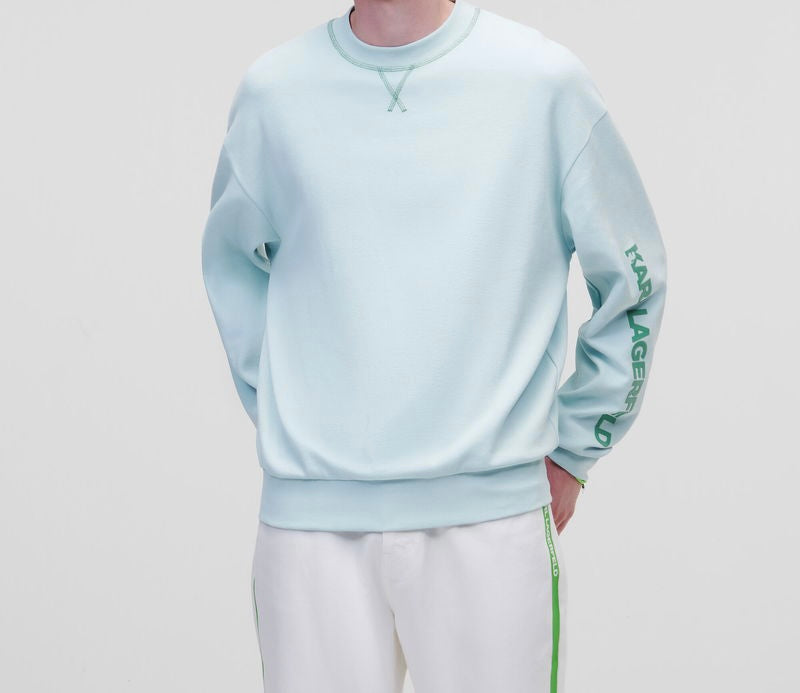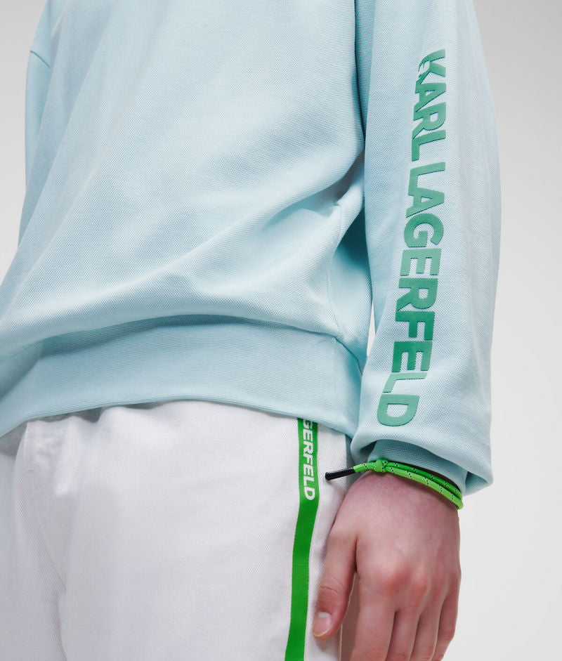 Confecționată din bumbac piqué, această bluză este un must-have pentru diminețile proaspete de primăvară și nopțile răcoroase de vară. Un imprimeu cu logo în culori vii pe brațul stâng, detaliile cusăturilor decupate și cusăturile contrastante overlock la gulerul rotund adaugă accente KARL unei ținute casual preferate din garderobă.