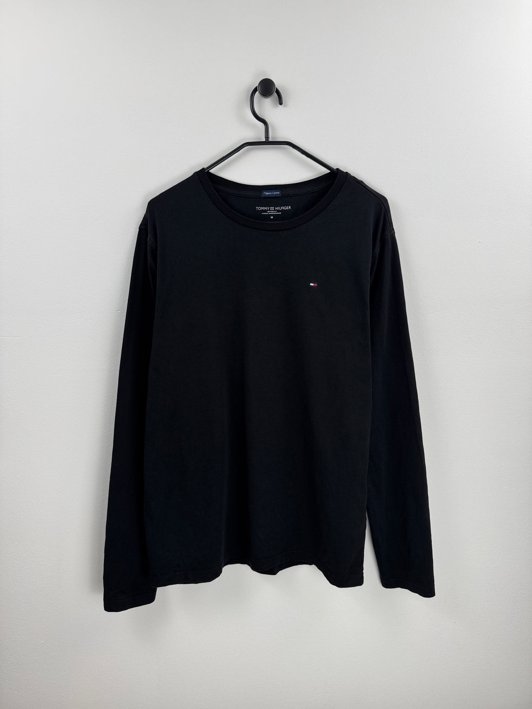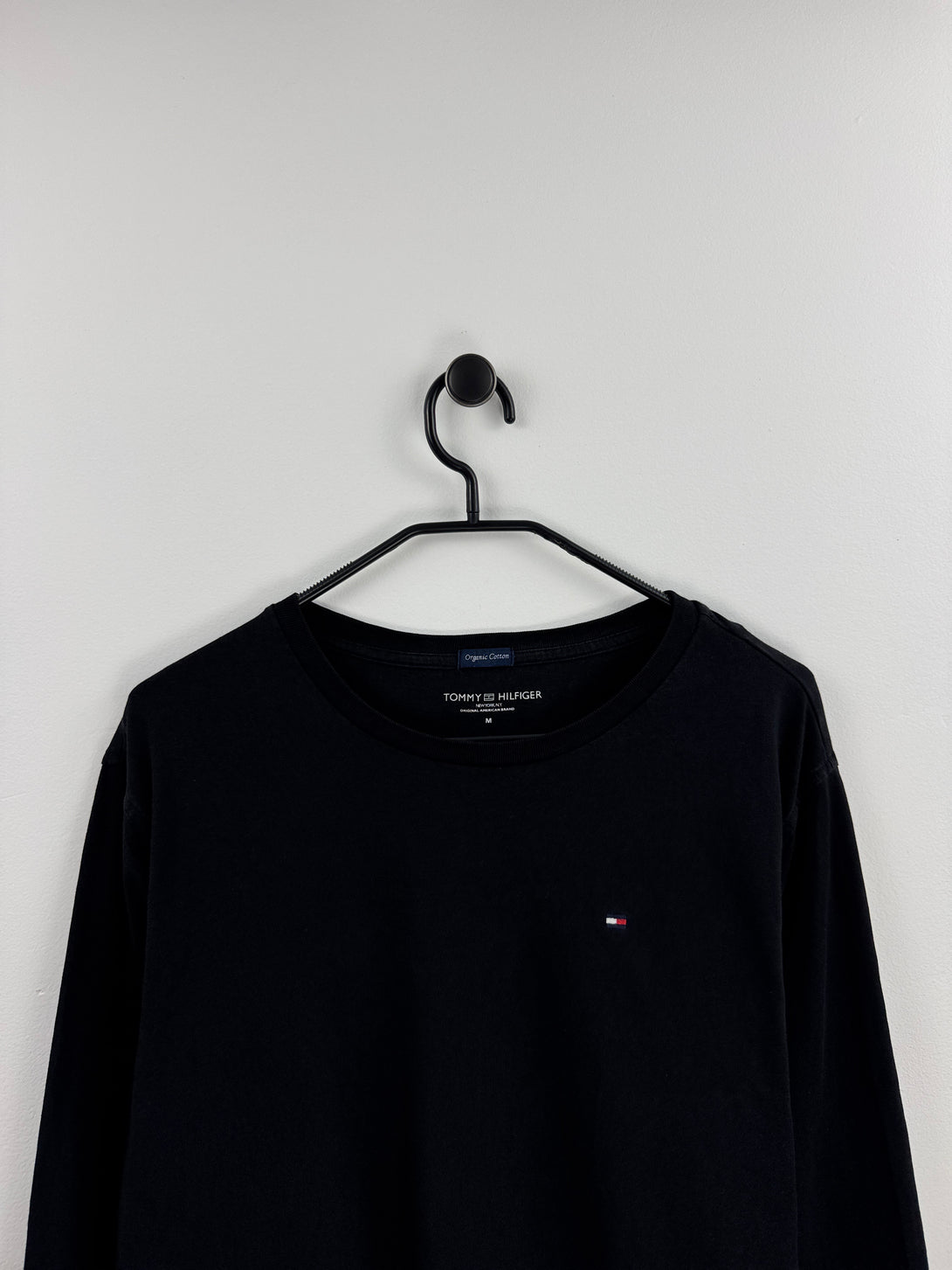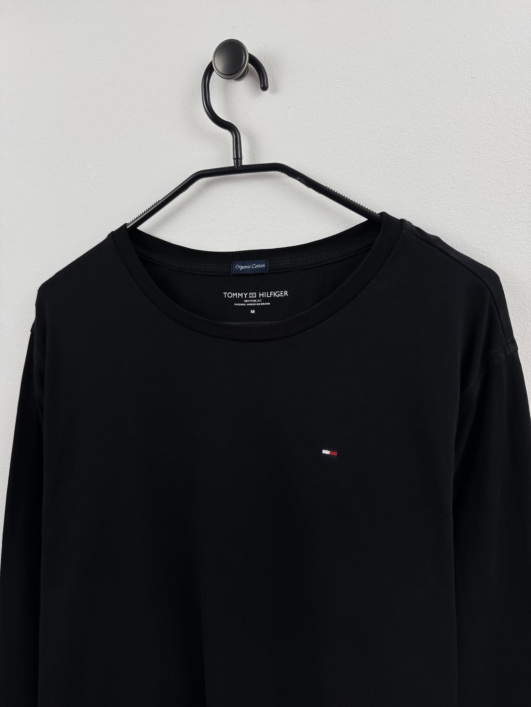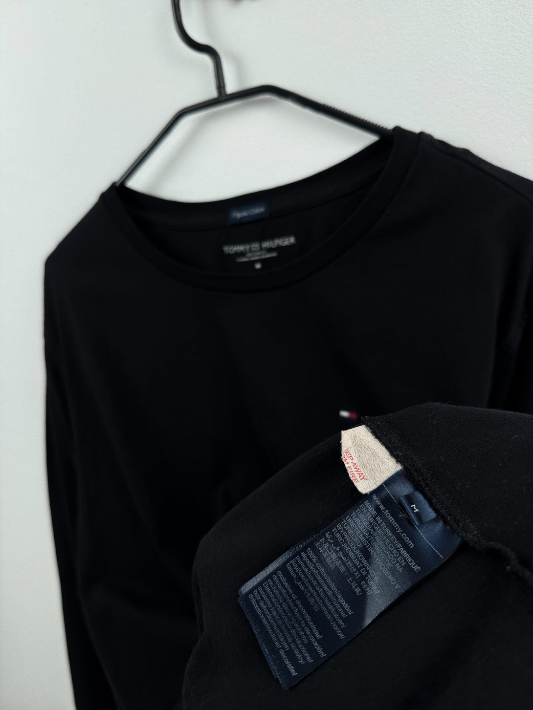 Bluză subțire Tommy Hilfiger negru cu mânecă lungă, un articol vestimentar de bază, caracterizat de logo-ul mic, brodat, pe piept.