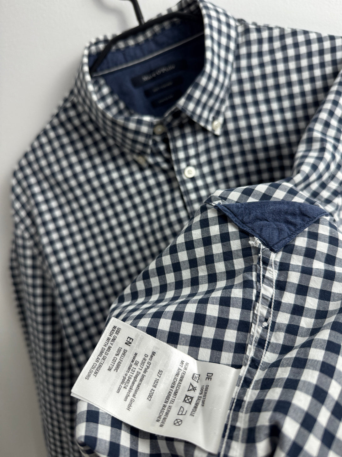 Aceasta este o cămașă pentru bărbați Marc O'Polo cu model în carouri (gingham).