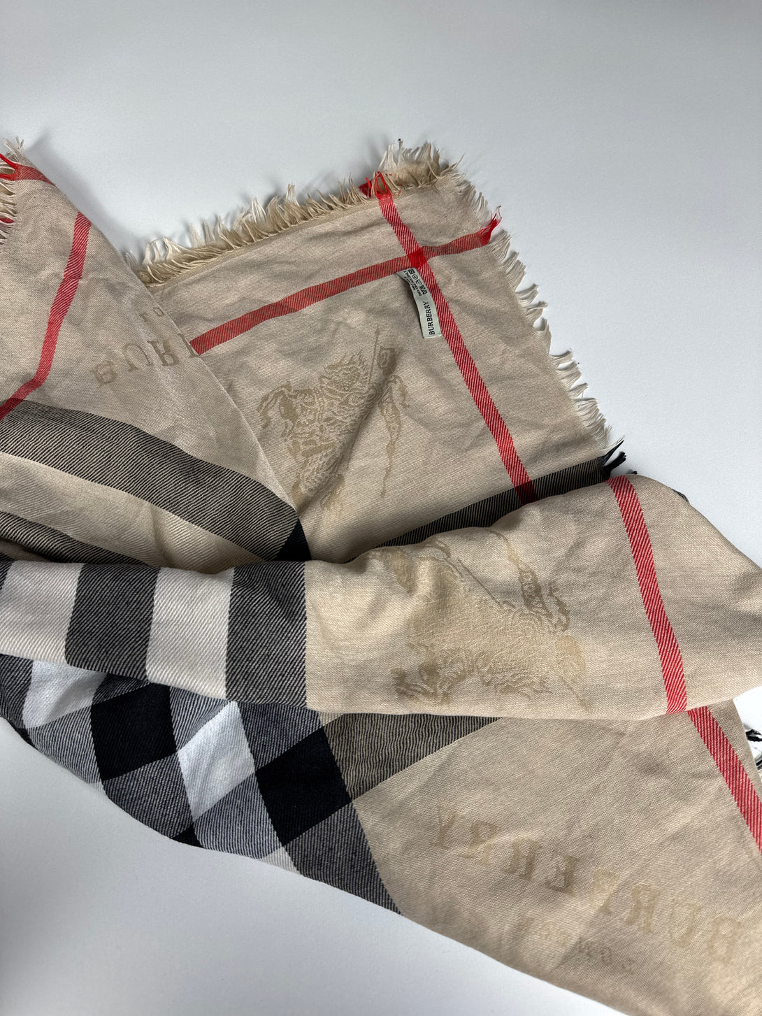 Eșarfă clasică cu carouri de la Burberry, cunoscută și sub numele de modelul iconic Vintage Check.