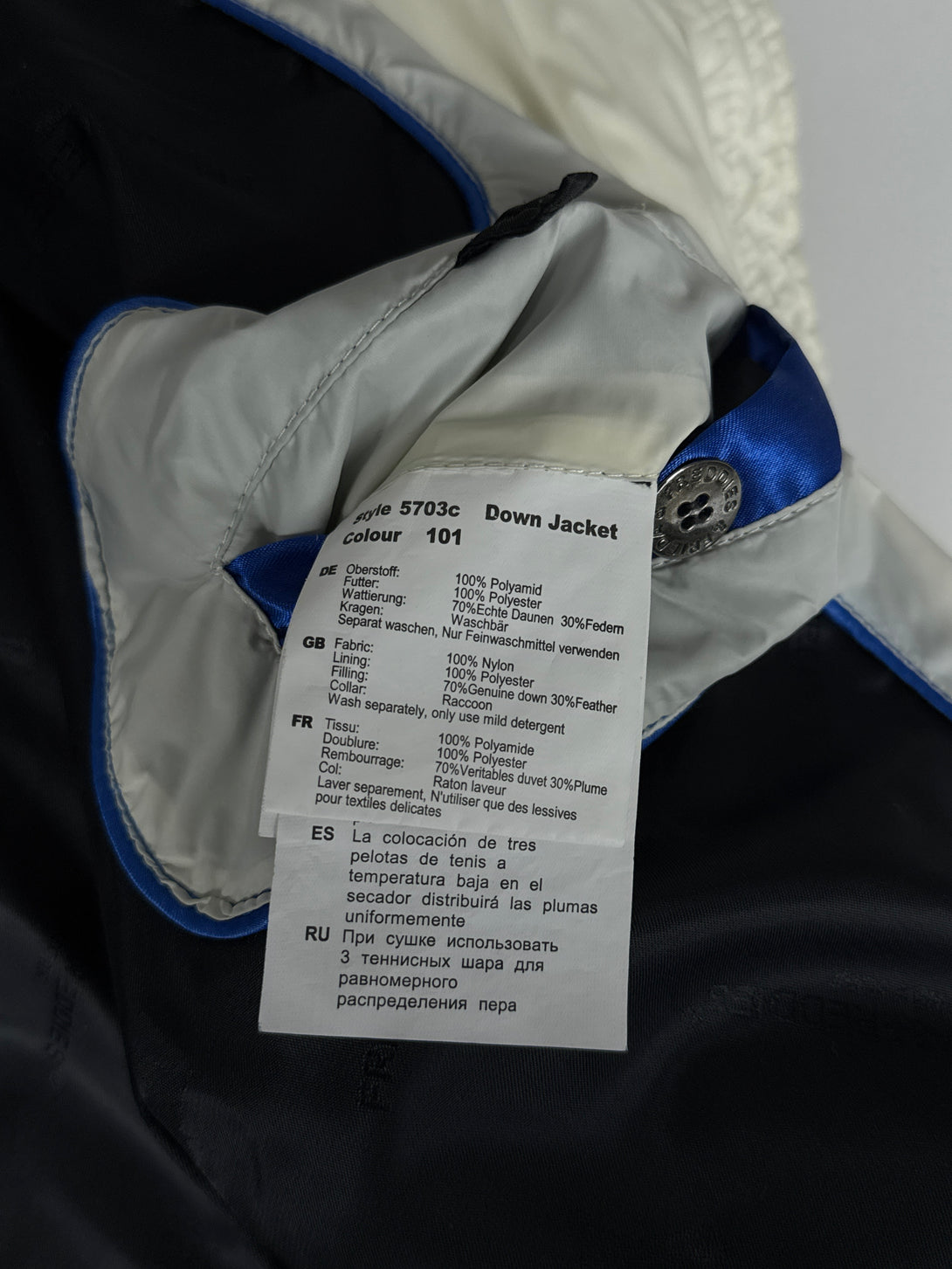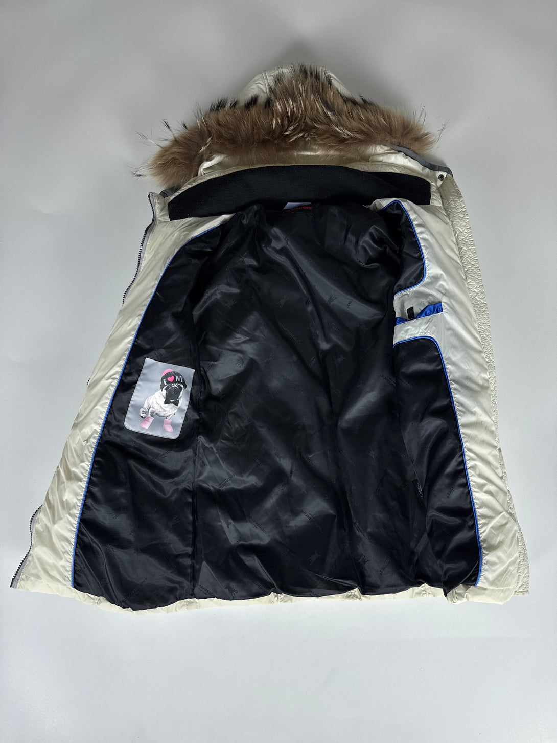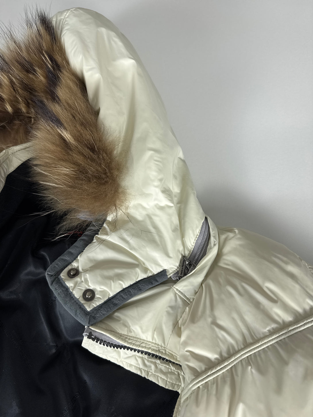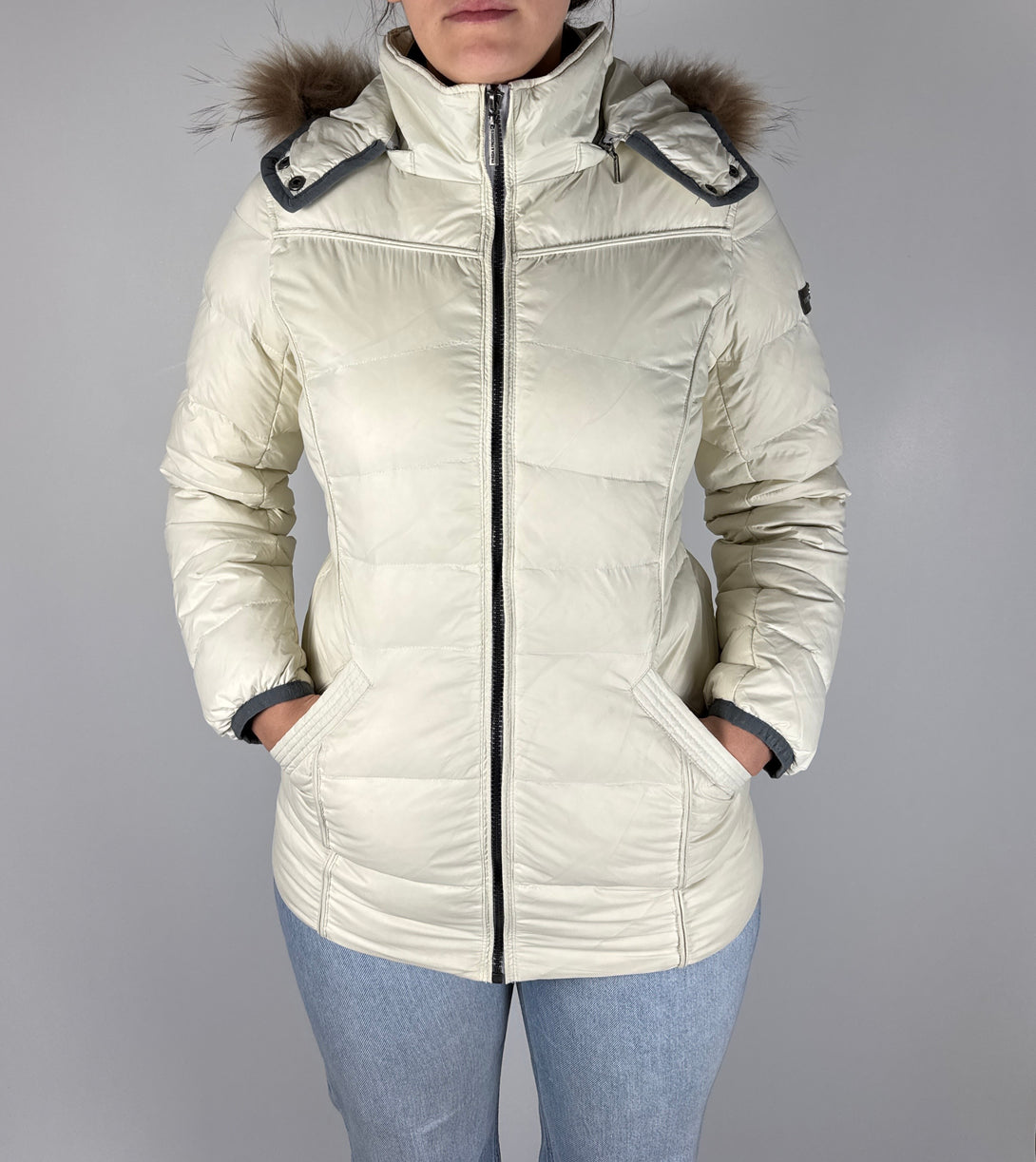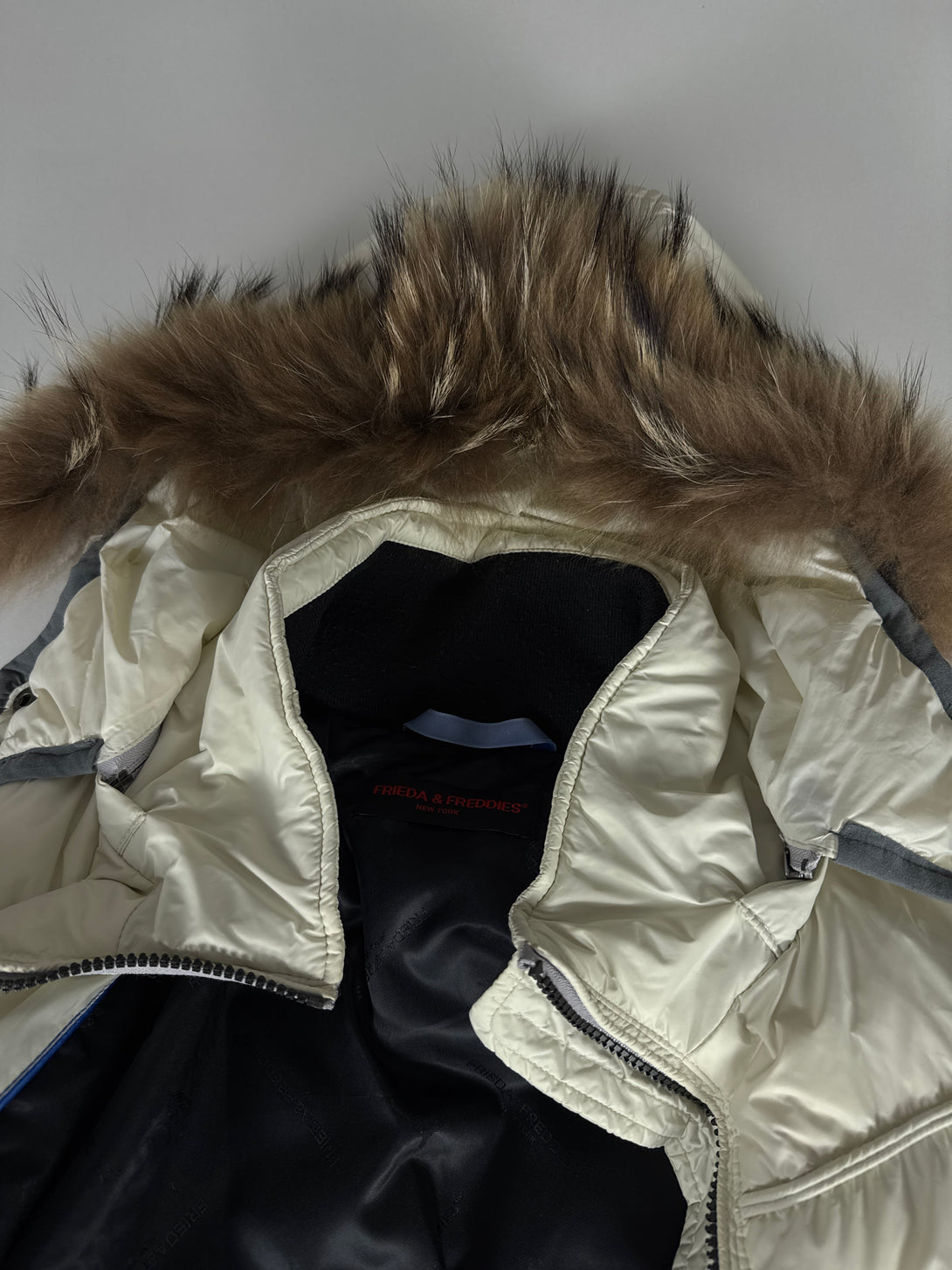 Geacă matlasată Frieda & Freddies 🐶bej deschis, glugă cu blană artificială detașabilă, exterior din poliester, umplutură cu 70% puf autentic, 30% pene 🪶 mărimea S (lungimea 62cm, bust 50cm, umeri 40cm, lungime braț 60cm)