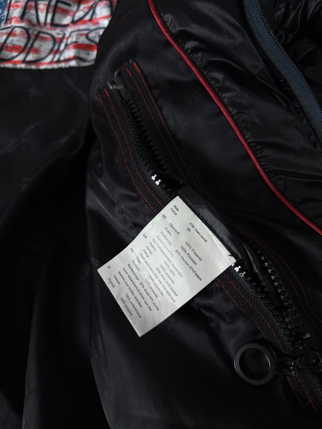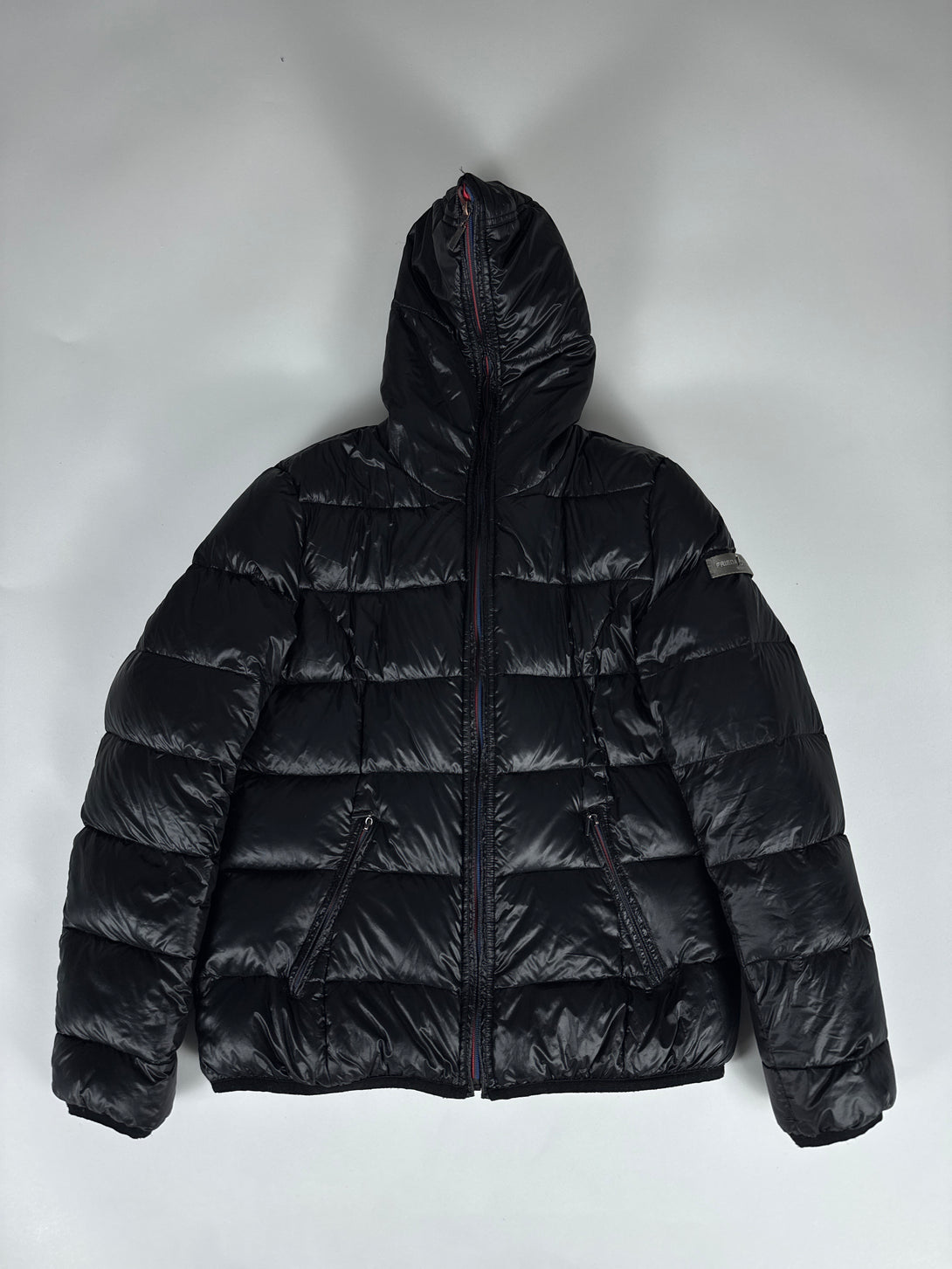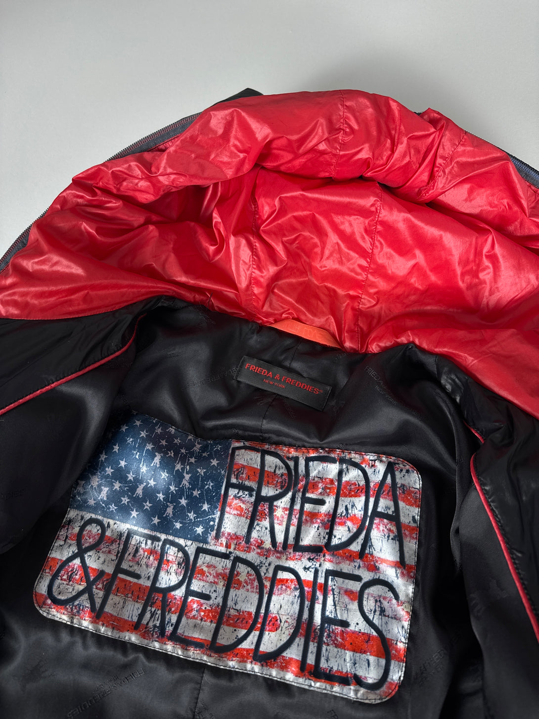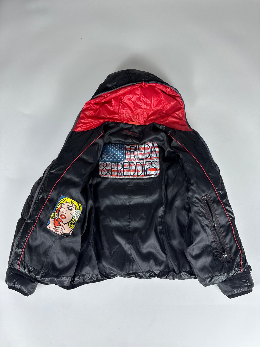 Geacă puffer (matlasată) neagră de damă de la brandul Frieda & Freddies 🐶umplutură 80% puf, 20% pene, mărimea S (lungime 62cm, bust 52cm, umeri 40cm, lungime braț 62cm)