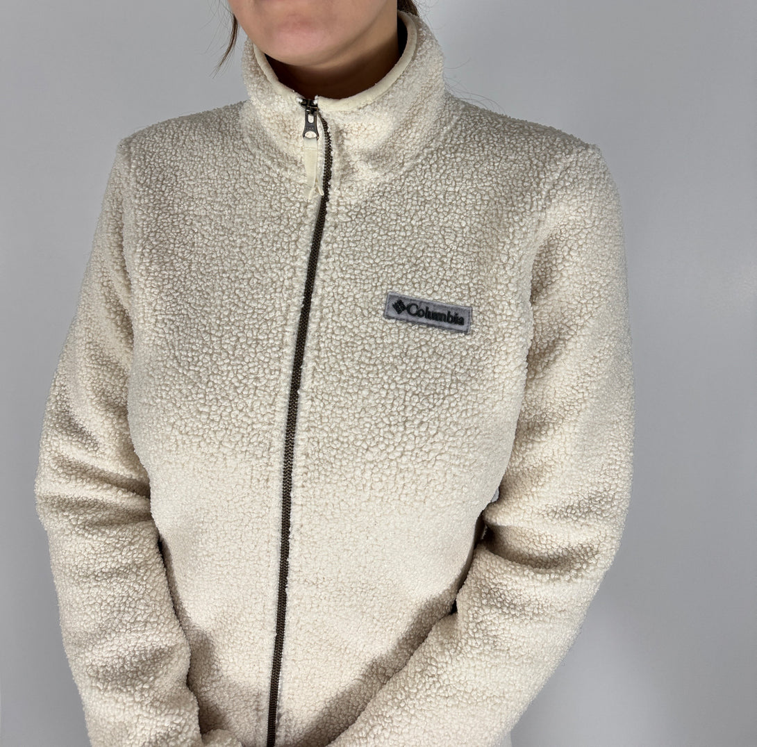 Jacheta fleece Columbia Panorama Full Zip, o piesă vestimentară populară, confecționată din fleece sherpa pufos.