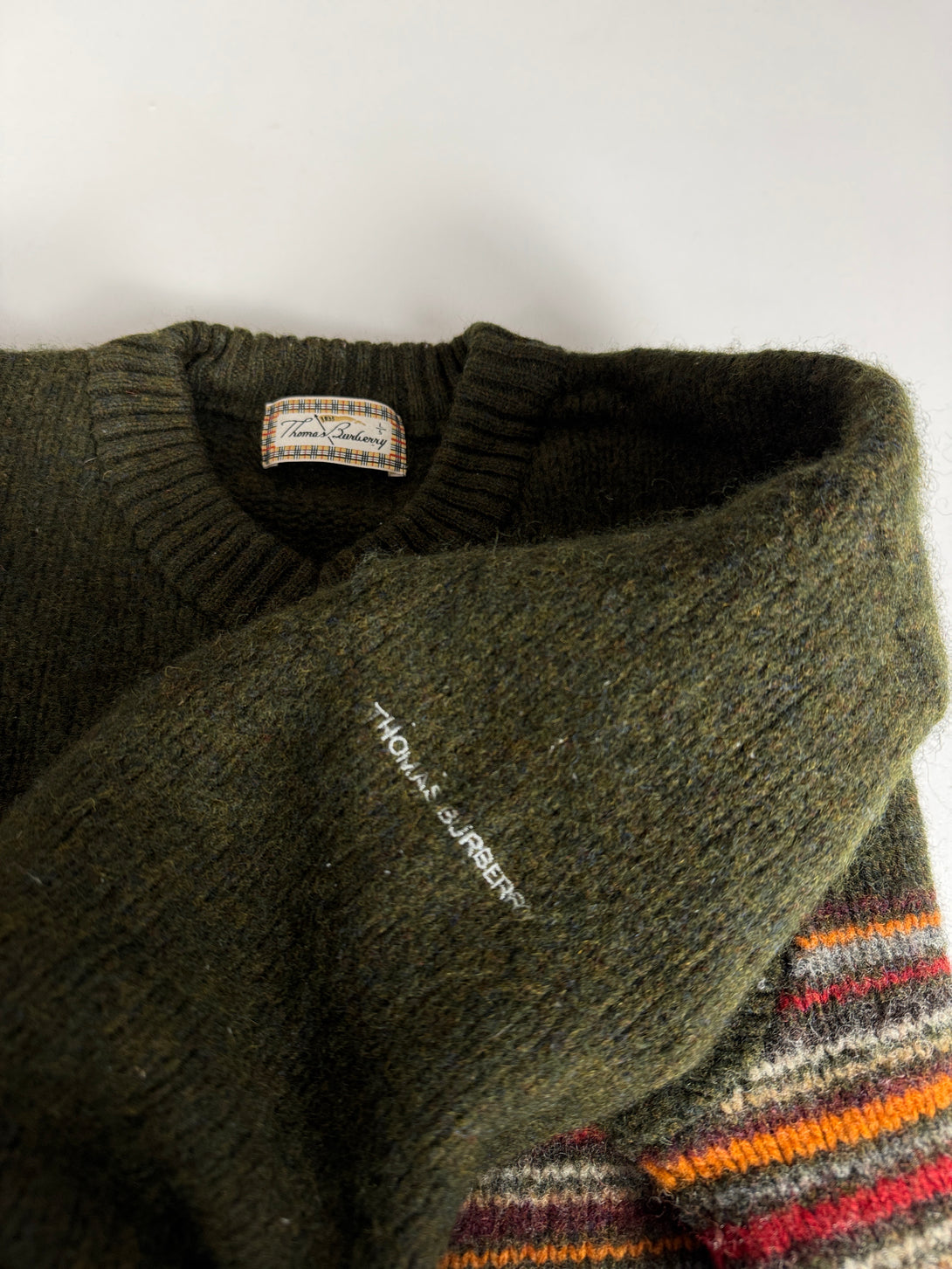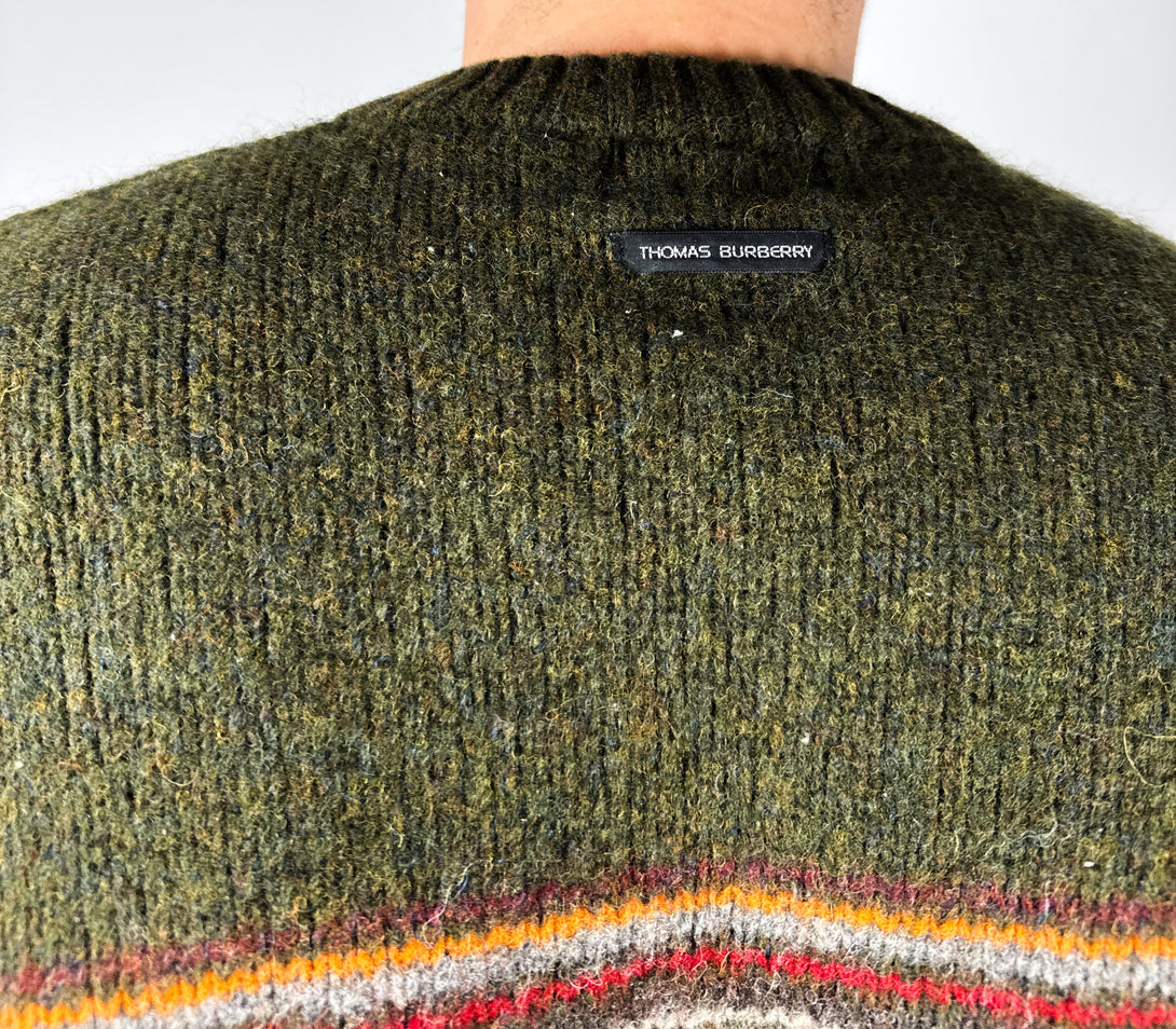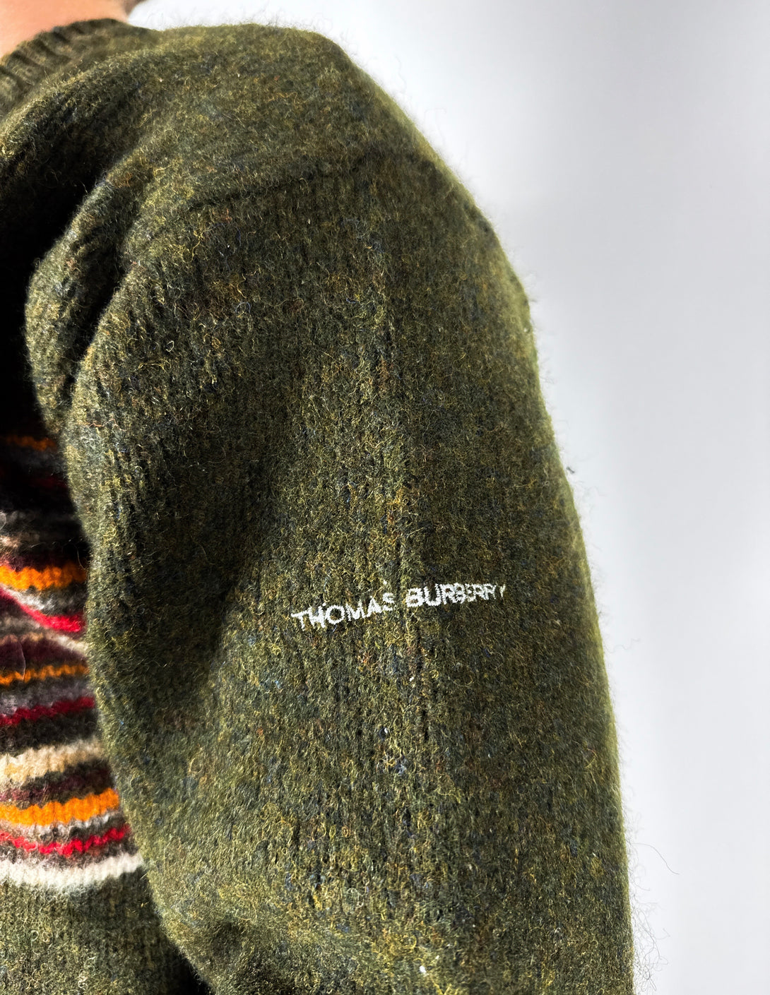 Pulover Thomas Burberry, brodat pe brațul stâng, din lână 100%, foarte gros, oversized (L pe etichetă, recomandăm pentru M)