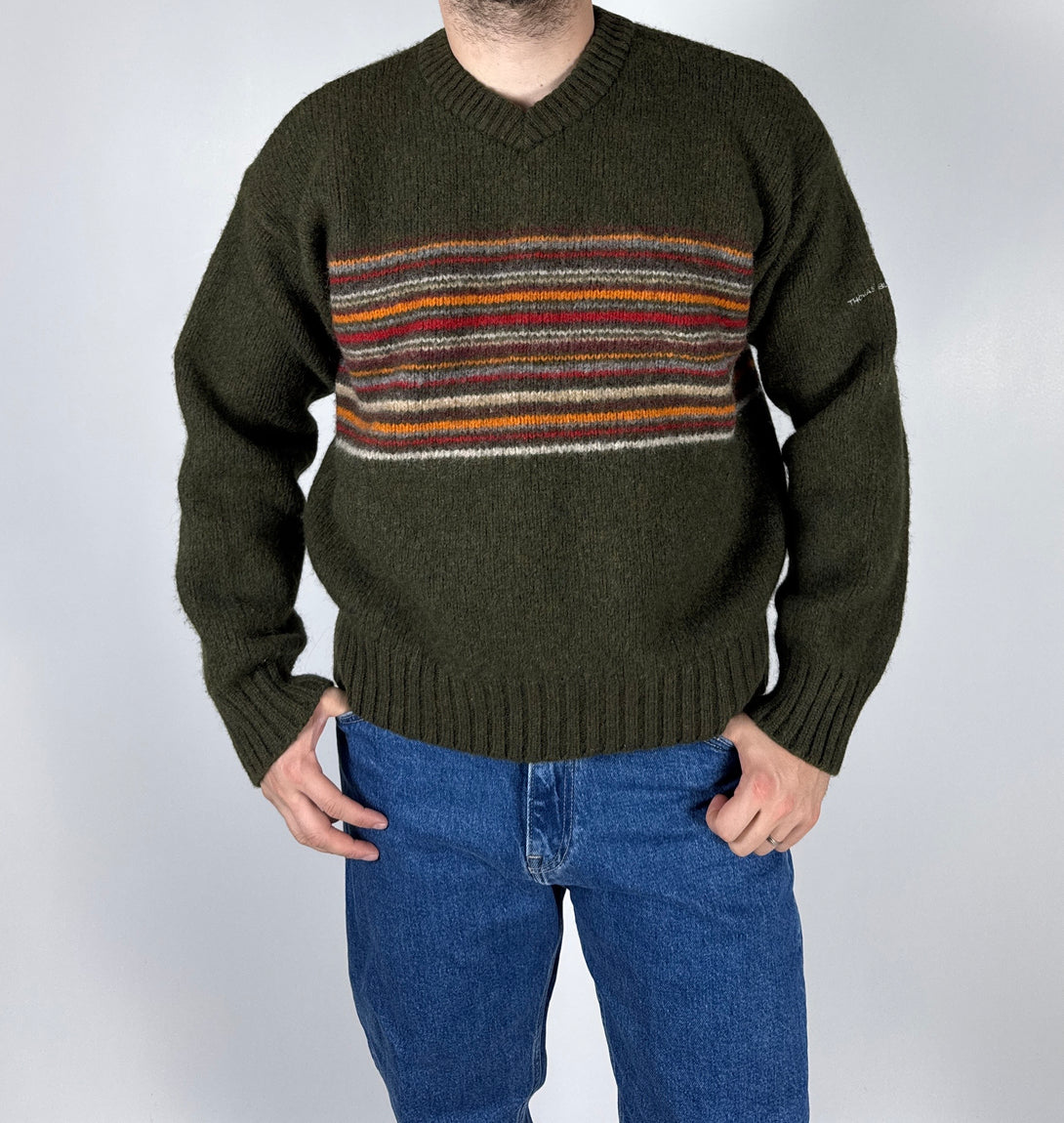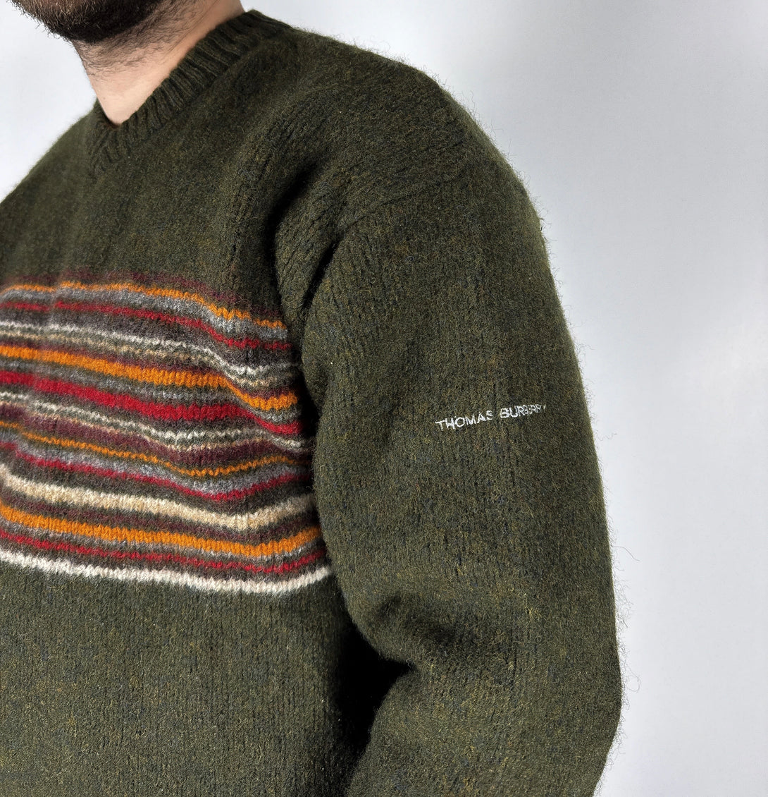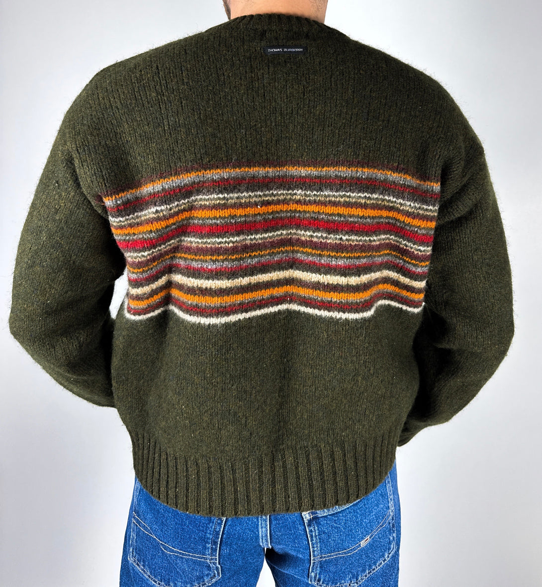 Pulover Thomas Burberry, brodat pe brațul stâng, din lână 100%, foarte gros, oversized (L pe etichetă, recomandăm pentru M)