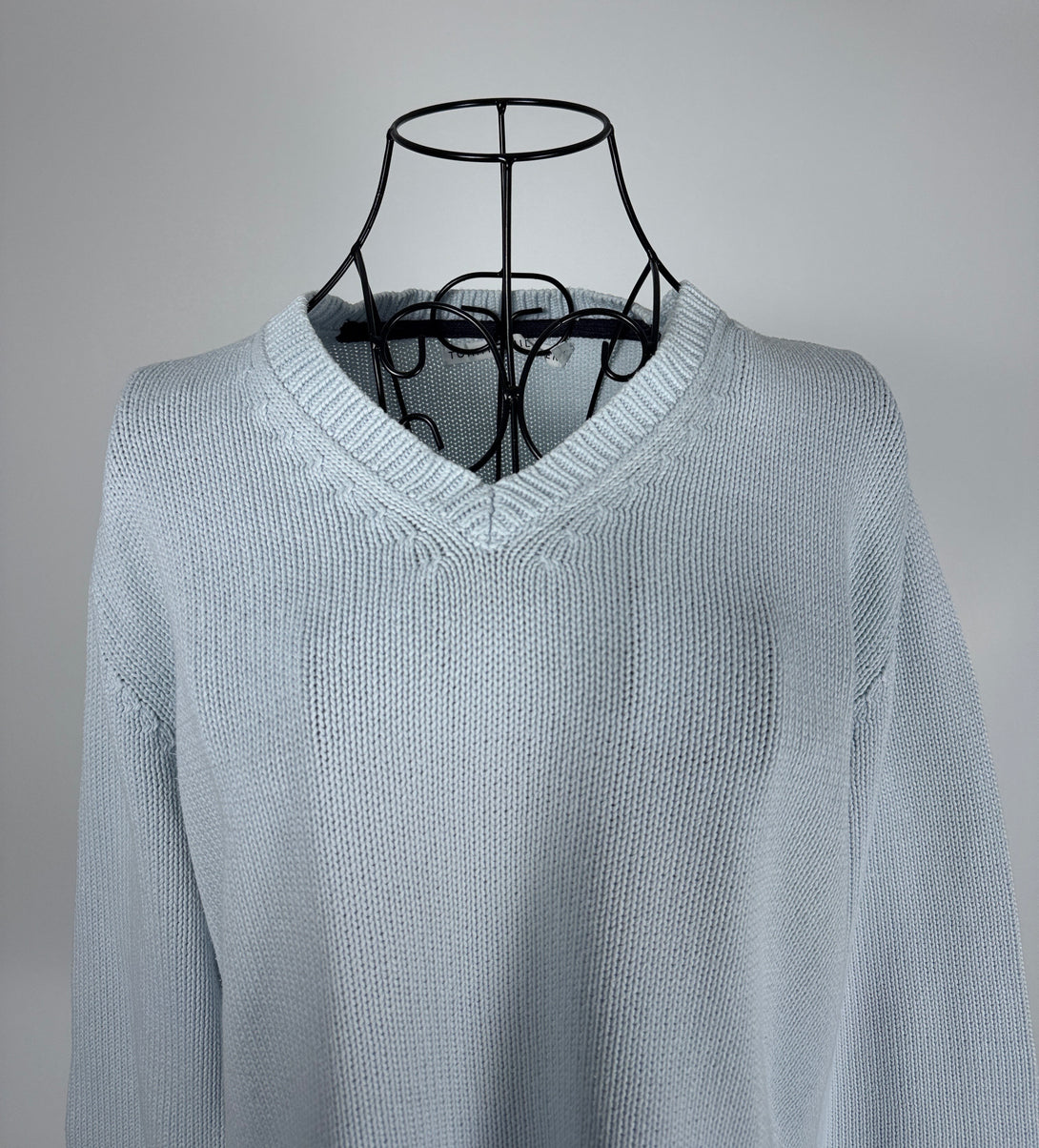 - Stil: Pulover tricotat cu decolteu în V (V-neck)