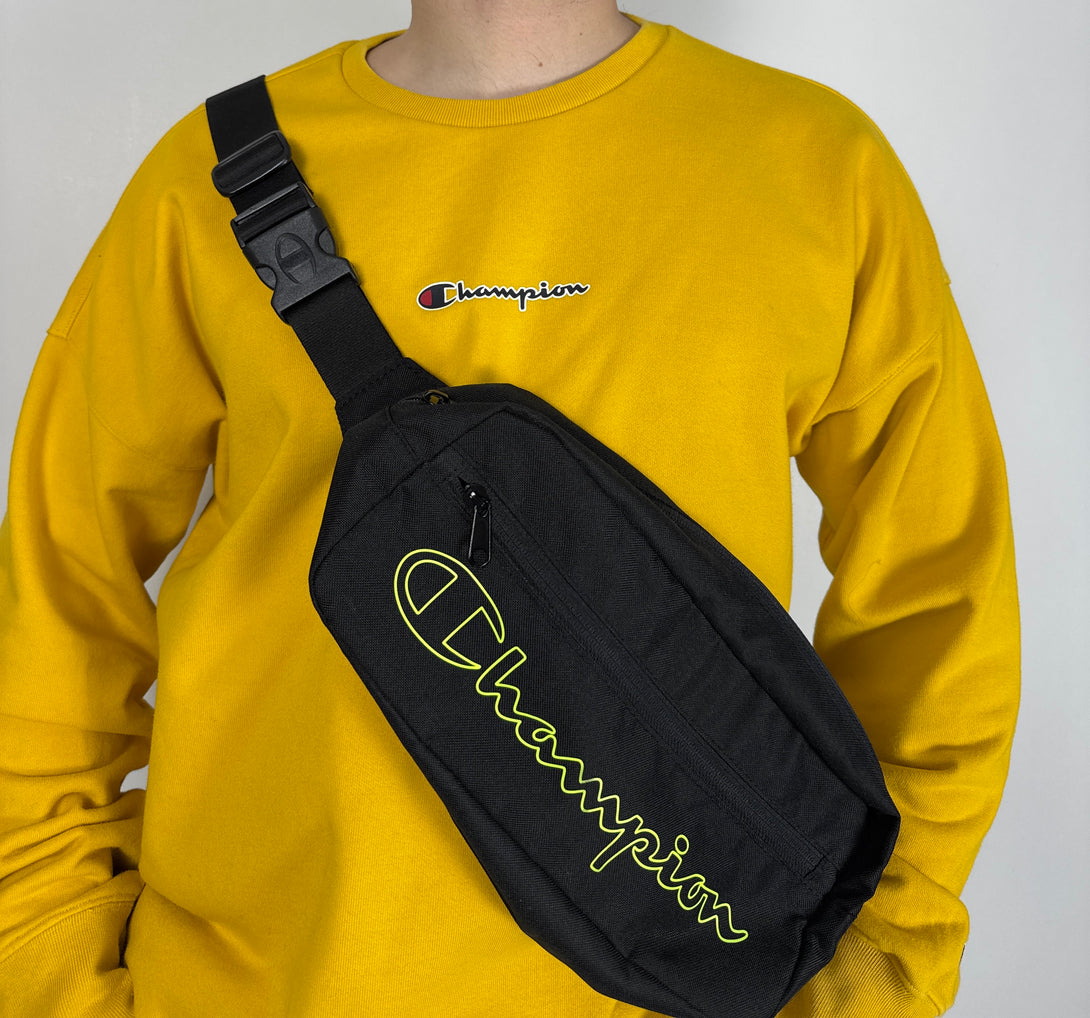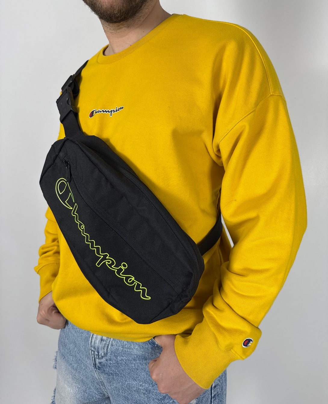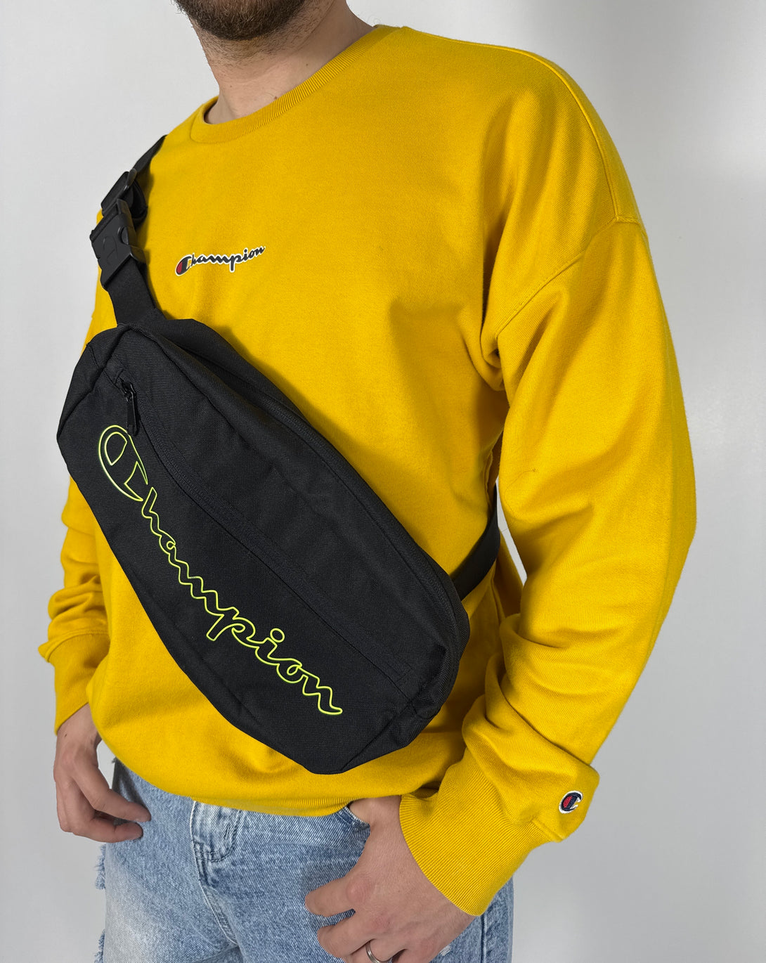 - Culoare: Neagră, cu logo-ul Champion brodat cu fir de culoare galben neon sau lime pe partea frontală.