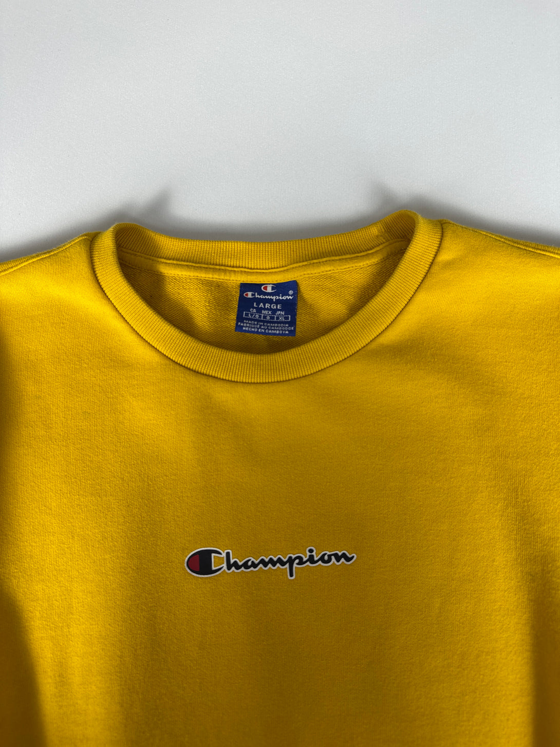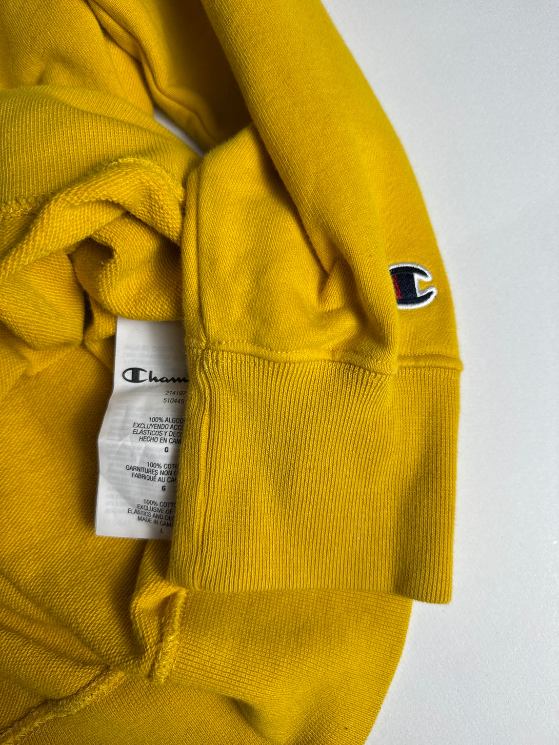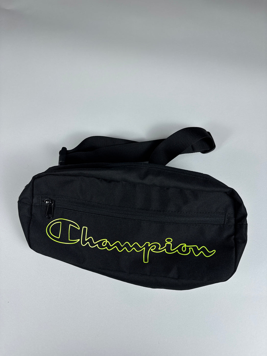 - Culoare: Neagră, cu logo-ul Champion brodat cu fir de culoare galben neon sau lime pe partea frontală.