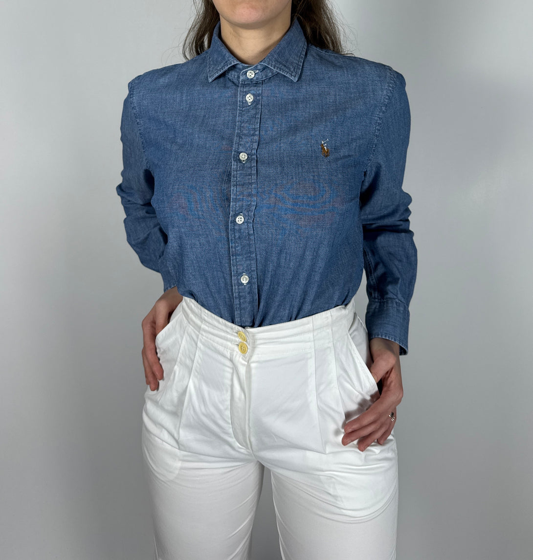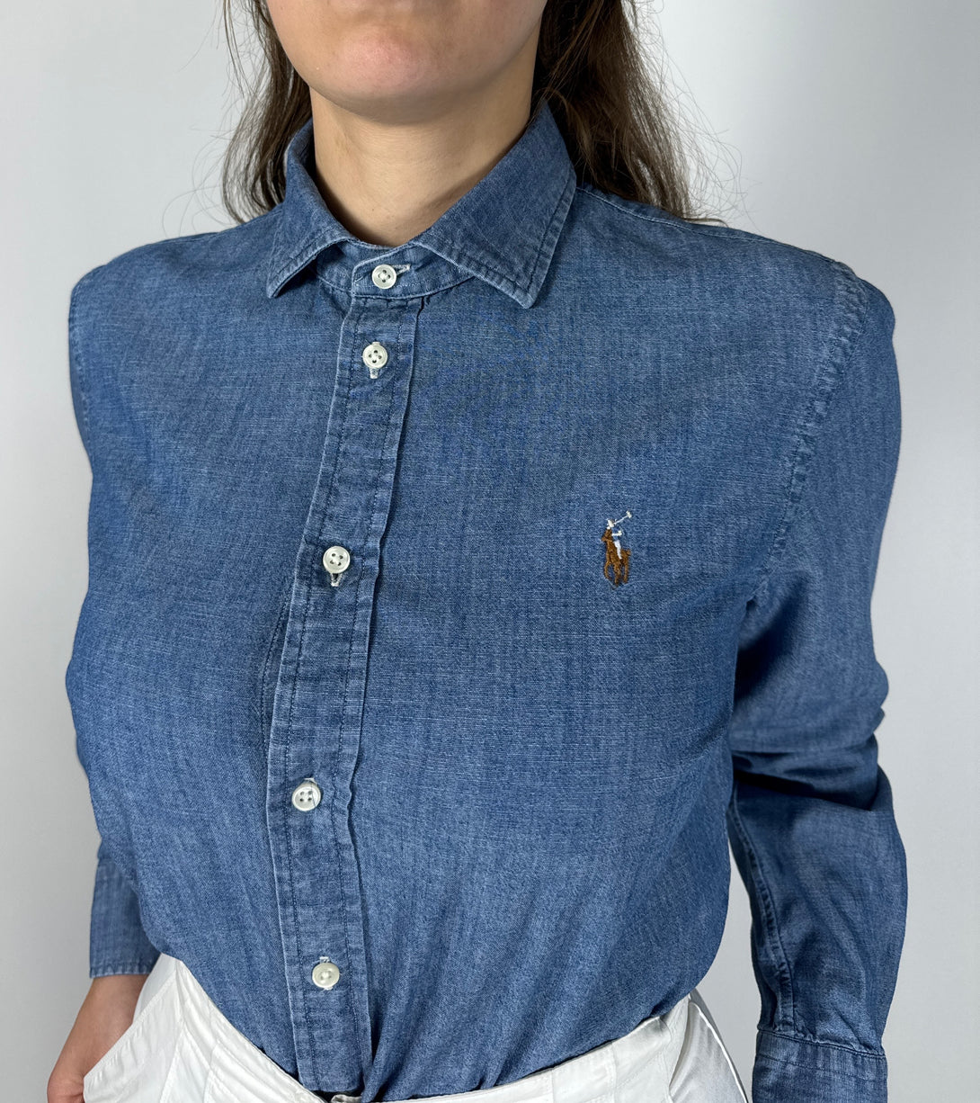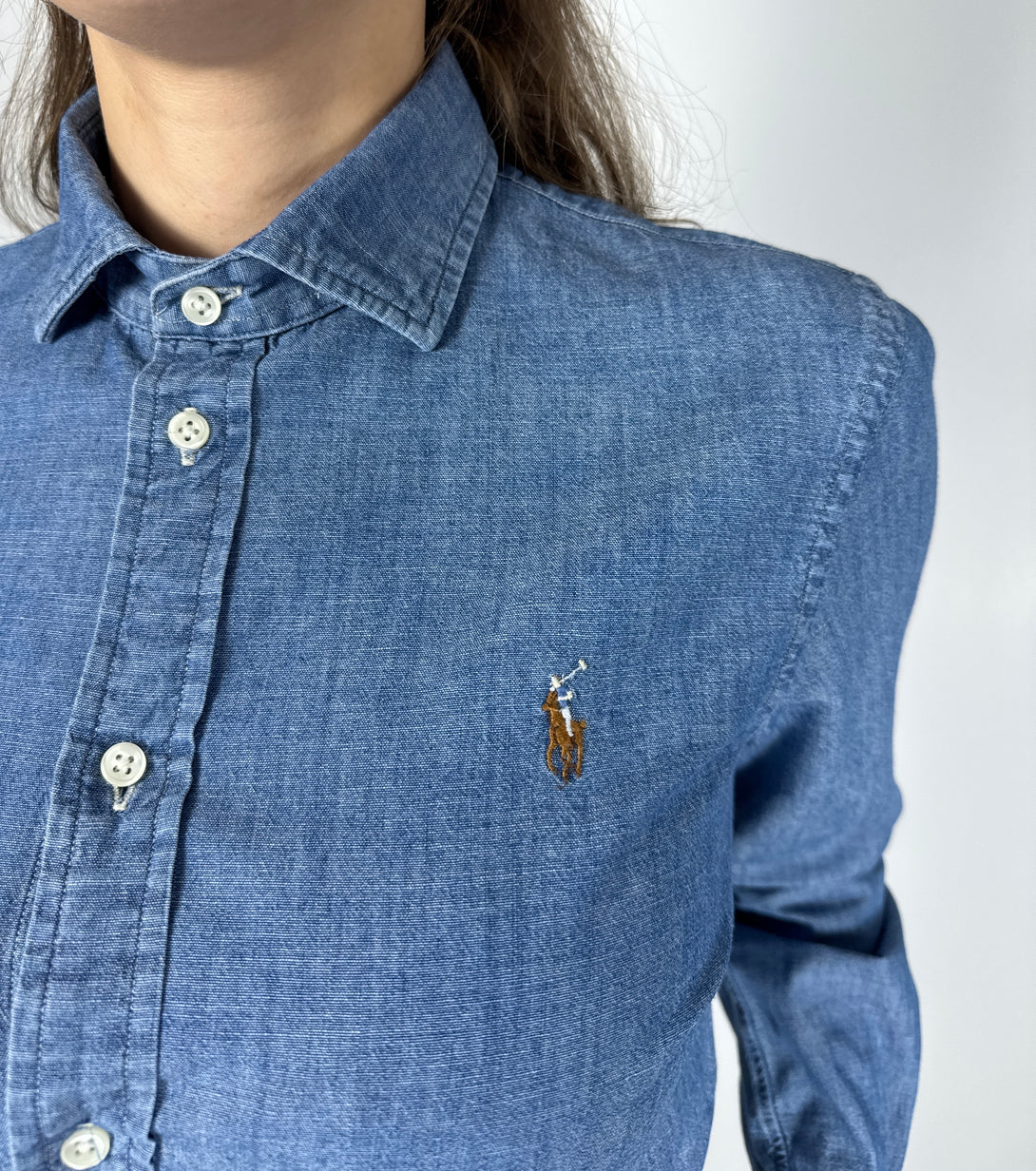 - Detalii: Guler clasic, închidere cu nasturi în față, manșete cu nasturi și logo brodat