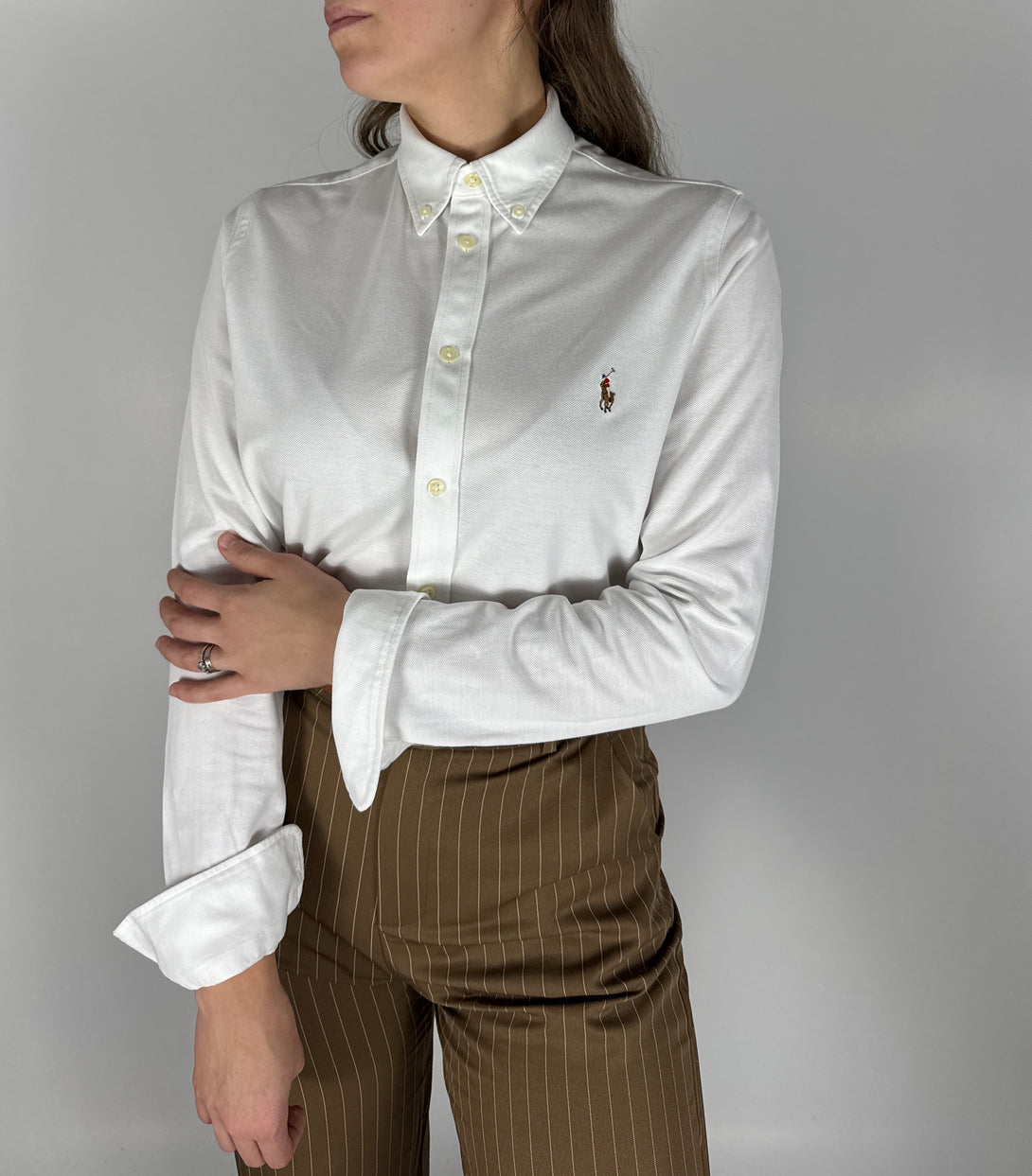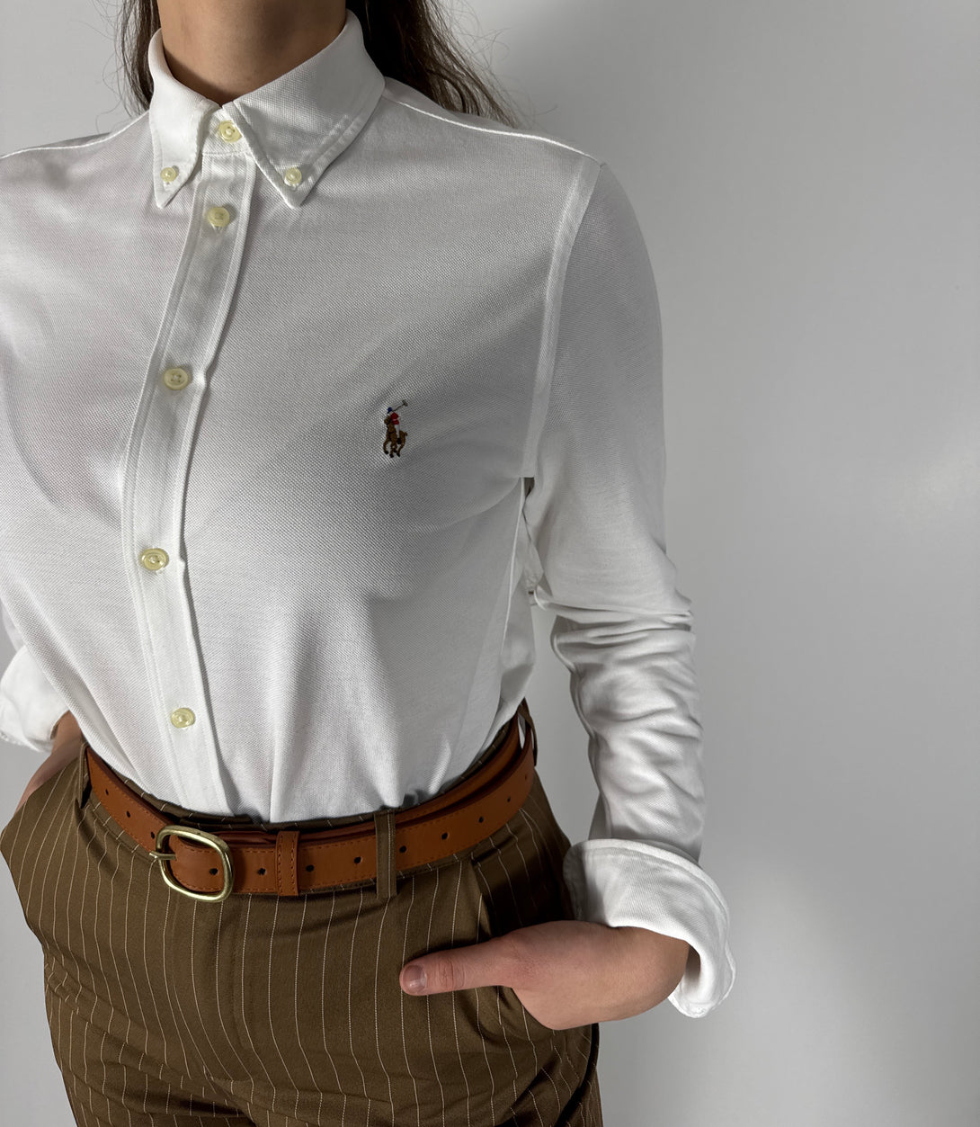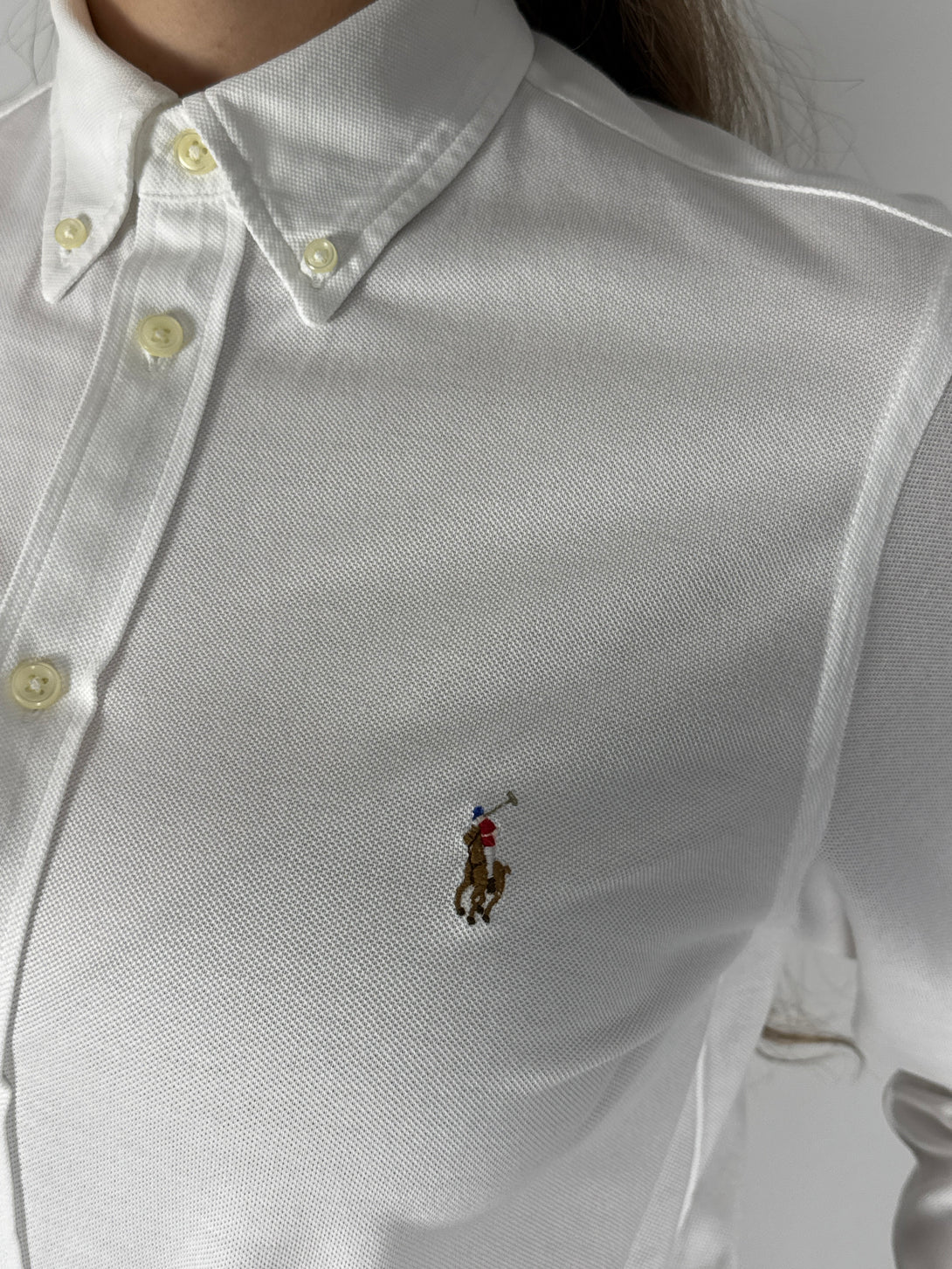 - Detalii: Guler cu nasturi (button-down) și logo-ul emblematic Polo Pony brodat pe piept