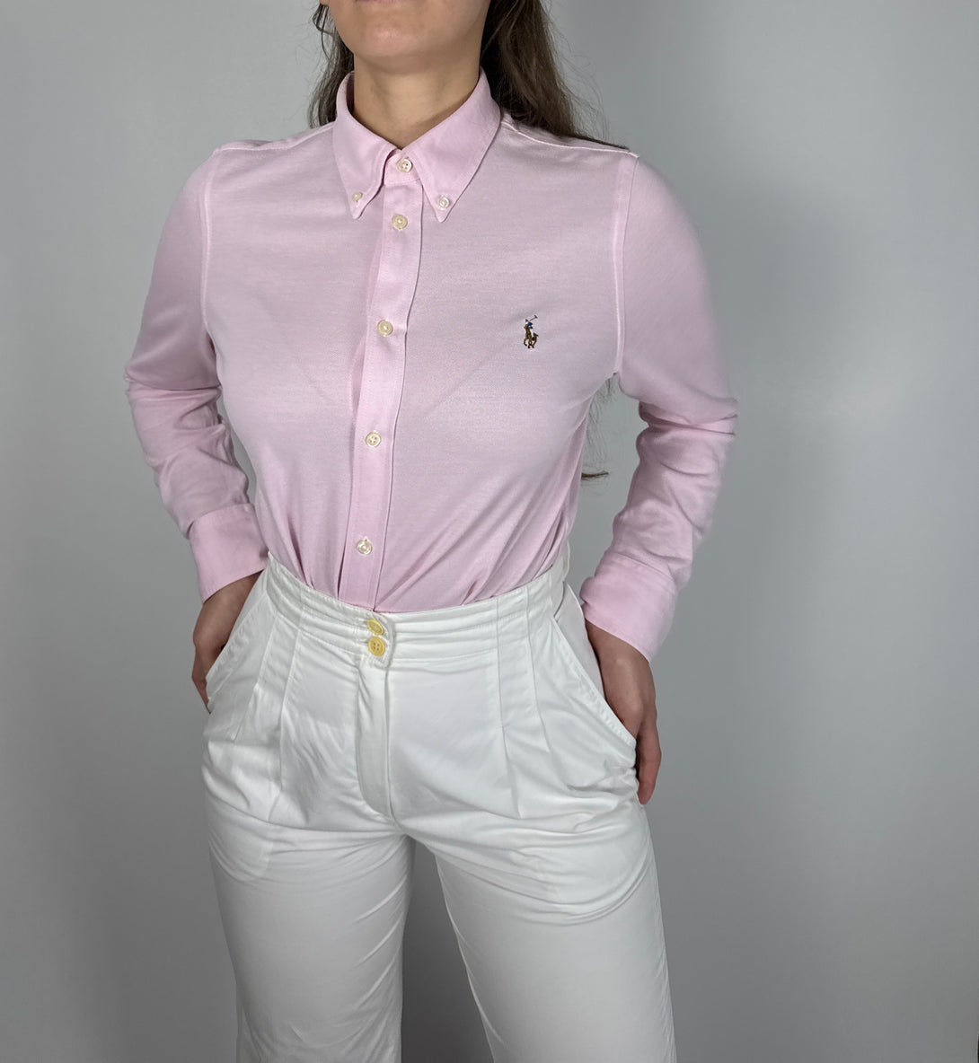 - Detalii: Guler cu nasturi, plachetă cu nasturi frontală, logo brodat cu ponei în culori contrastante