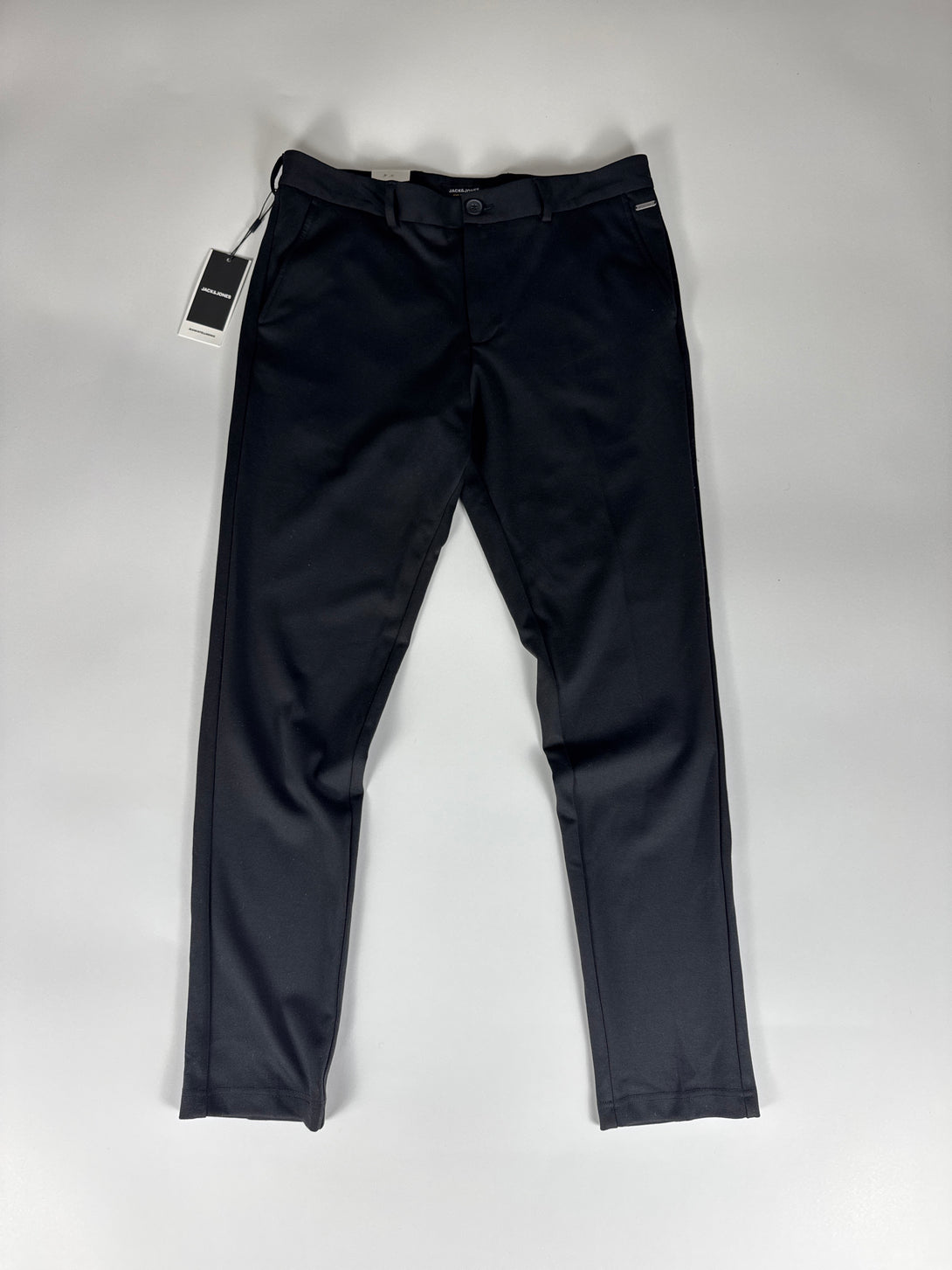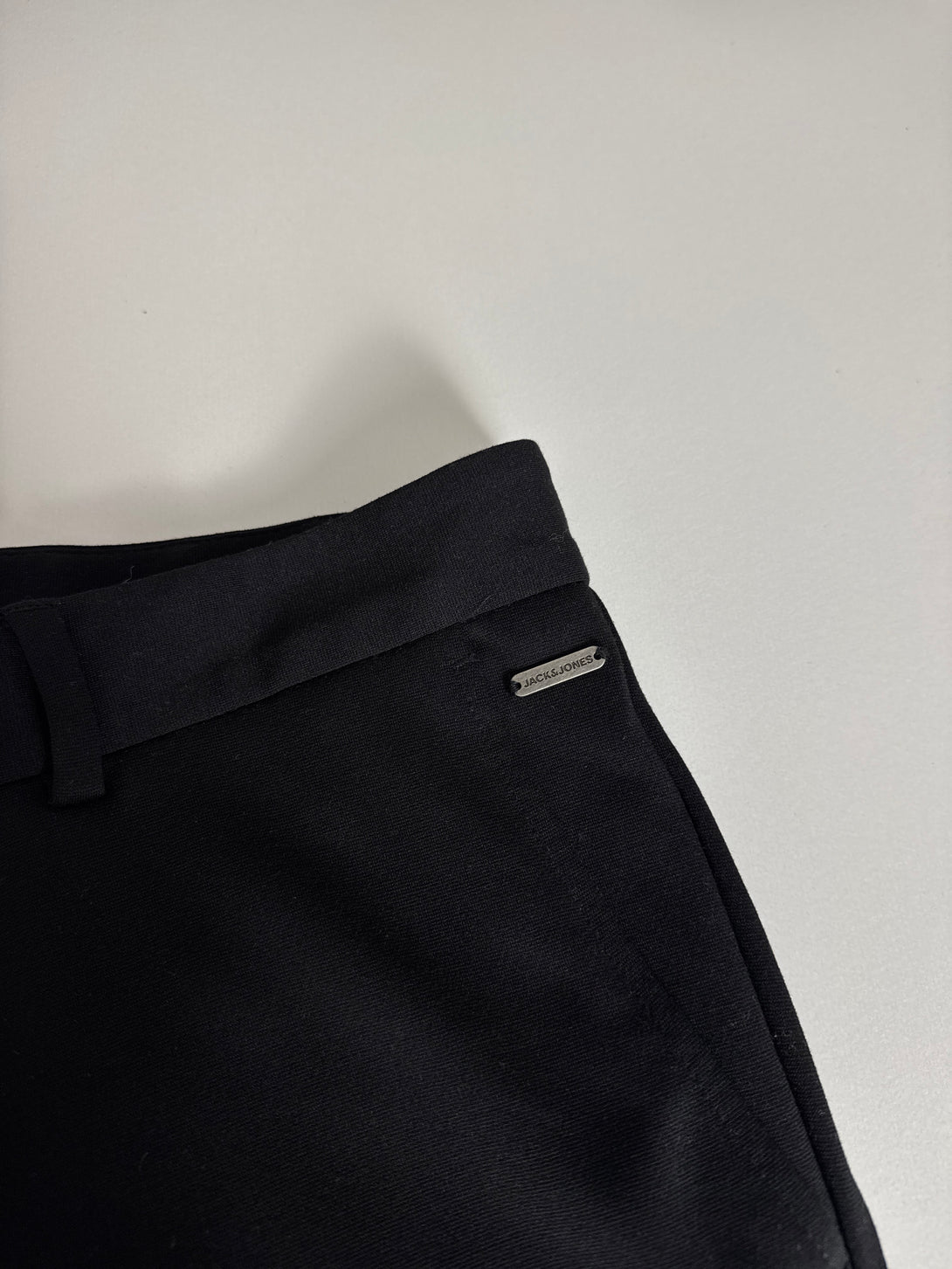- Detalii: Prezintă o închidere clasică cu nasture și fermoar, buzunare oblice în față și buzunare la spate.